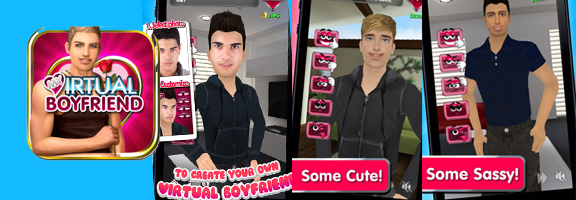 In this so-called game, you have to find a virtual boyfriend and have him fall in love with you. There are about 100 odd guys to choose between, a lot of which portray themselves as the typical male stereotypes. Then you can play your part by customizing the clothing, face, hair and even name. To begin with, your virtual boyfriend will use some cheesy pick up line to try to get your attention and impress you. It is up to you to decide how to react, either with a disgusted face or a smiley and thumbs up or angry face and thumbs down or confused.