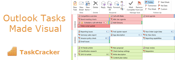 With TaskCracker for Outlook you can visually manage tasks using Urgency / Importance matrix inside the native Microsoft Outlook interface.