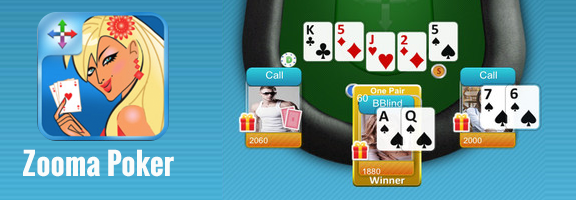 Summary: Zooma Poker is a fast moving poker game that provides you opportunity to play Texas Hold’em with your friends or unknown opponents. The game logic based game play is easy to understand and you can win chips to continue playing the game.
