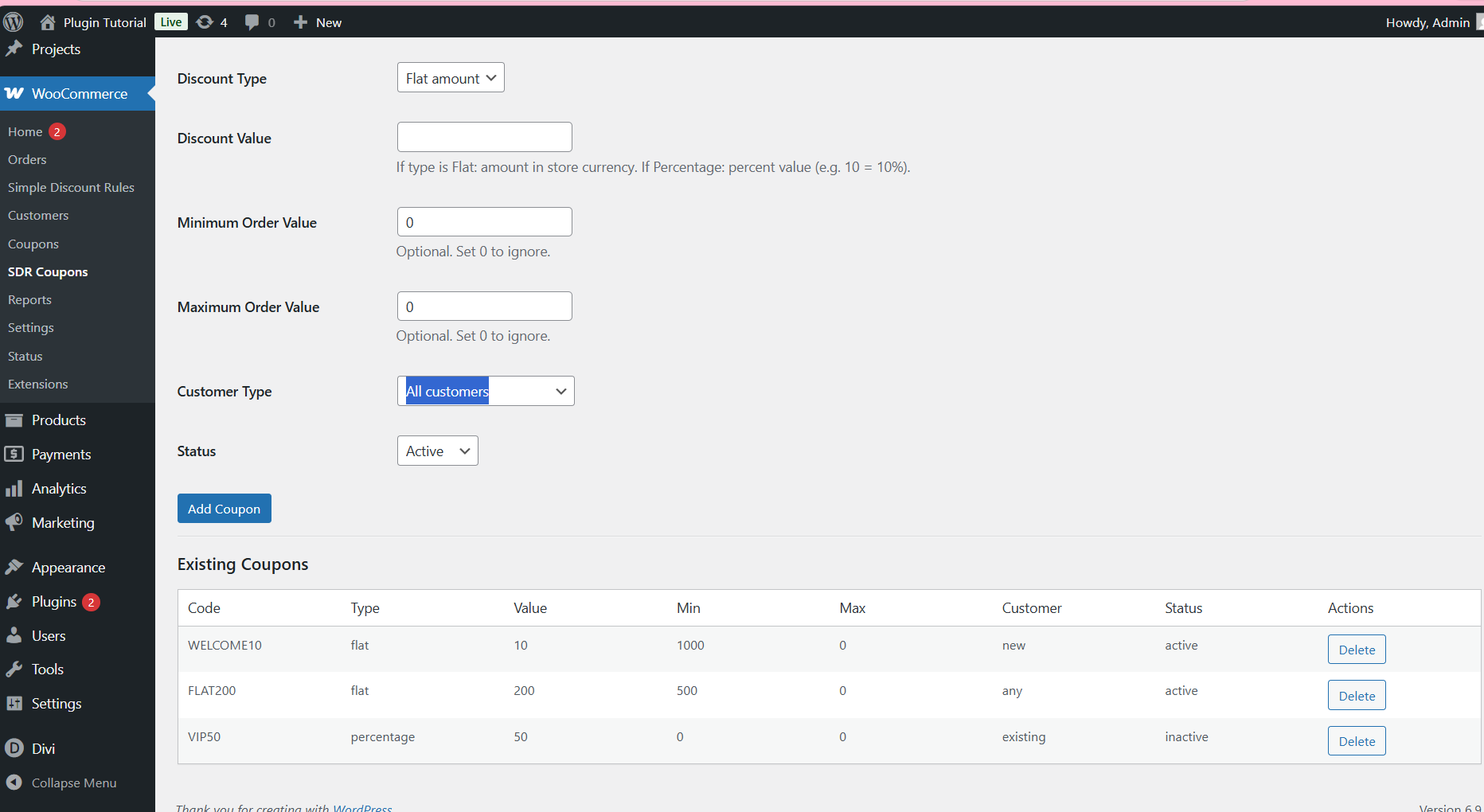 From this chapter onward, we no longer use the old single-coupon options like sdr_discount_type, sdr_flat_discount_amount, etc., for logic. They can remain in DB but are ignored.