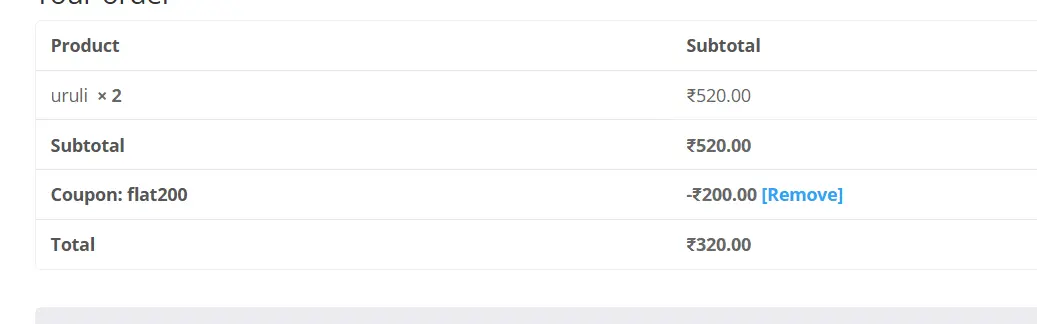 ‘discount_type’ => ‘percentage’, // or ‘flat’